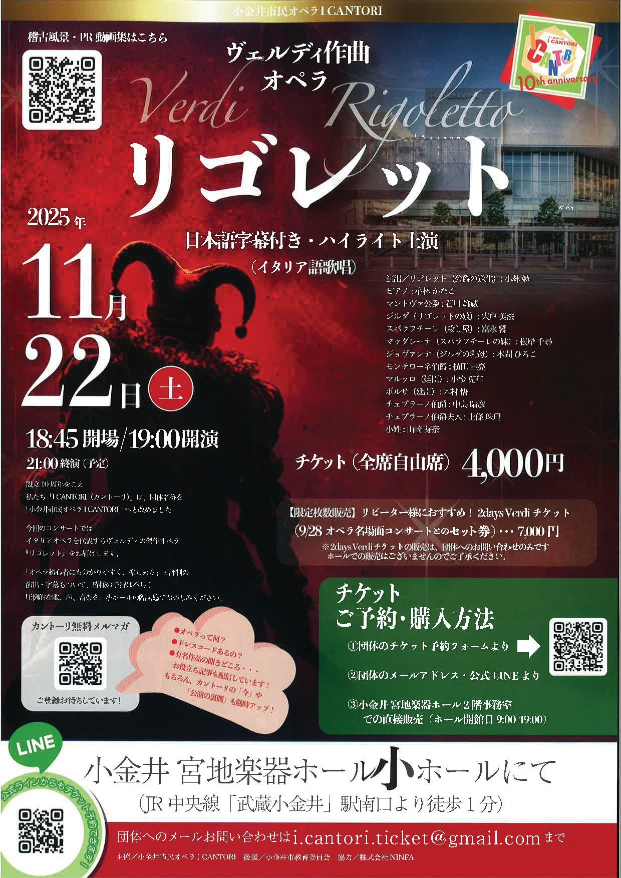 お問合せ | 小金井市民オペラI CANTORI チケット窓口 E-mail i.cantori.ticket@gmail.com HP https://icantori.jp/ |