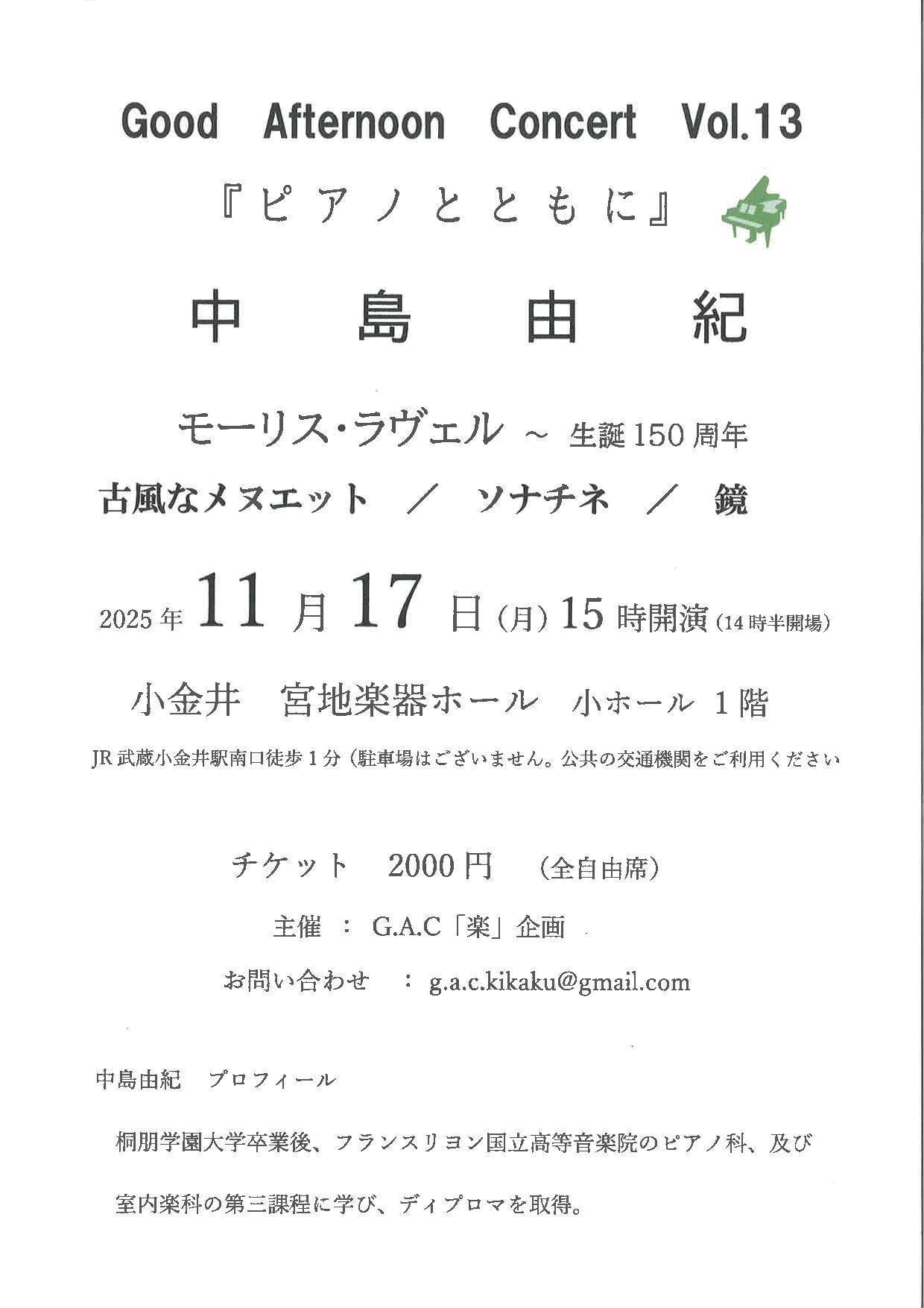 プログラム | Good Afternoon Concert Vol.13 「ピアノとともに」ラヴェル生誕150周年 |