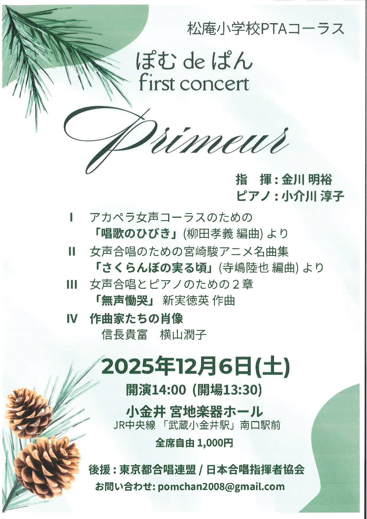 出演者 | 松庵小学校PTAコーラス ぽむ de ぱん 金川明裕 指揮 小介川淳子 ピアノ |