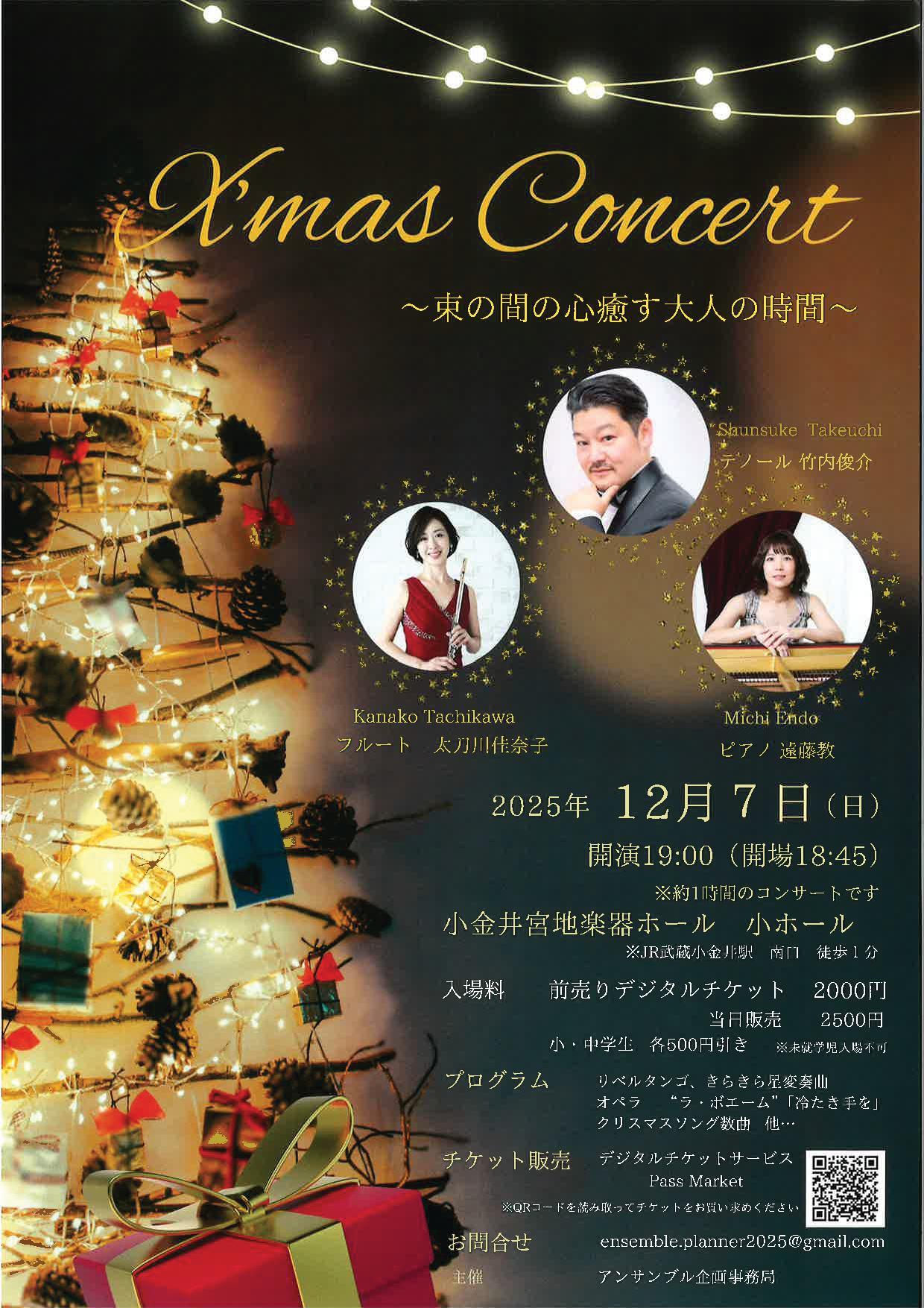 プログラム | リベルタンゴ、きらきら星変奏曲 オペラ“ラ・ボエーム”「冷たき手を」 クリスマスソング 他 |