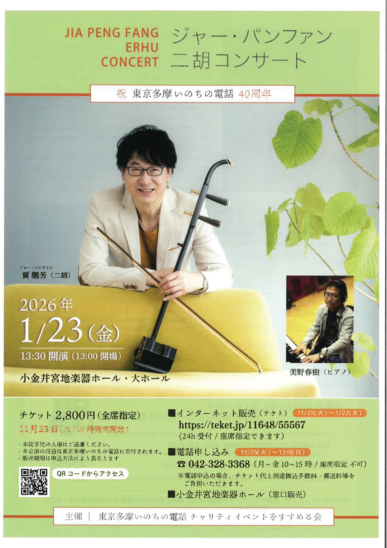 | 出演者 | (二胡)ジャー・パンファン (ピアノ)美野春樹 |