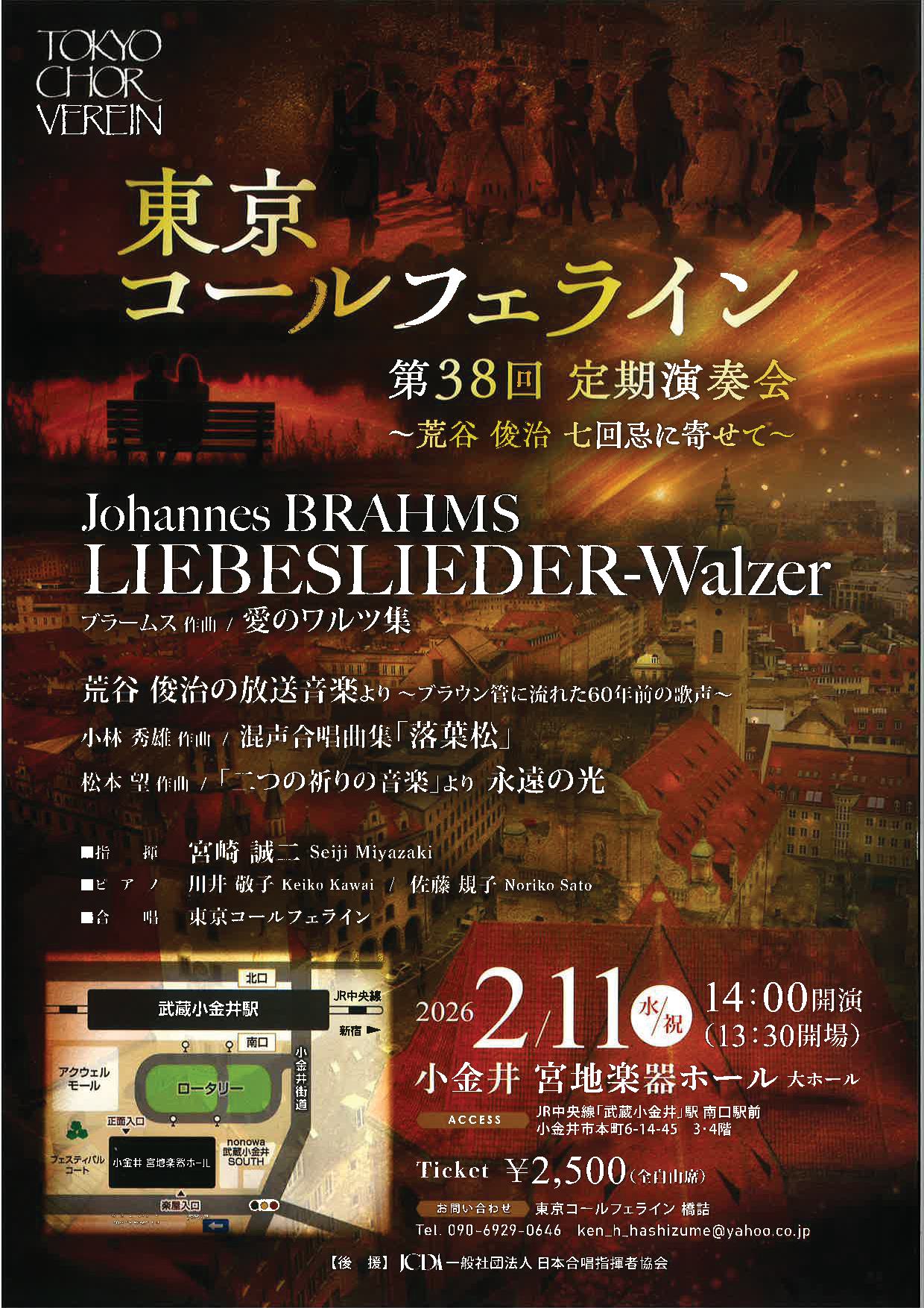 | プログラム | ブラームス作曲「愛のワルツ集」 荒谷俊治の放送音楽より~ブラウン管に流れた60年前の歌声~ 小林秀雄 作曲/混声合唱曲集「落葉松」 松本望 作曲/「二つの祈りの音楽」より 永遠の光 |