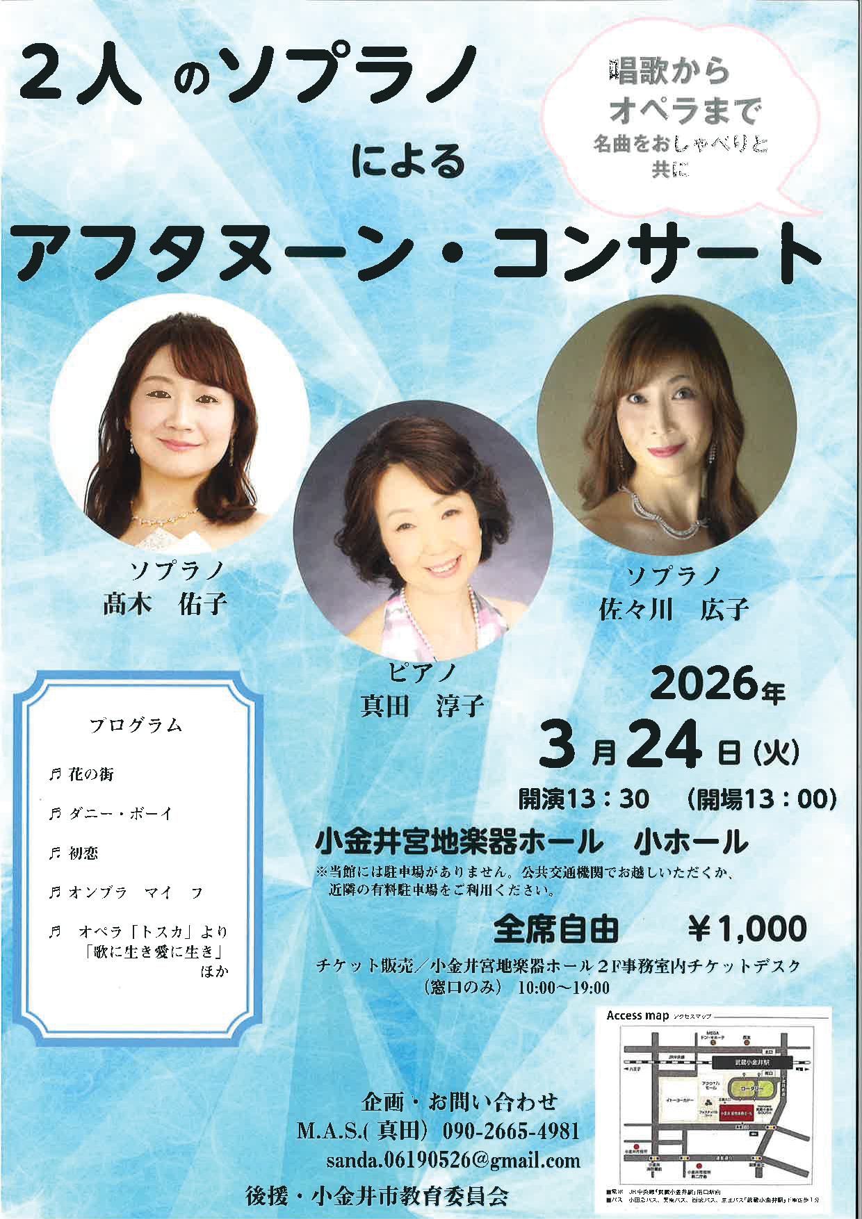 | 演目 | 花の街、ダニー・ボーイ、初恋、オンブラマイフ、オペラ「トスカ」より「歌に生き 愛に生き」 |