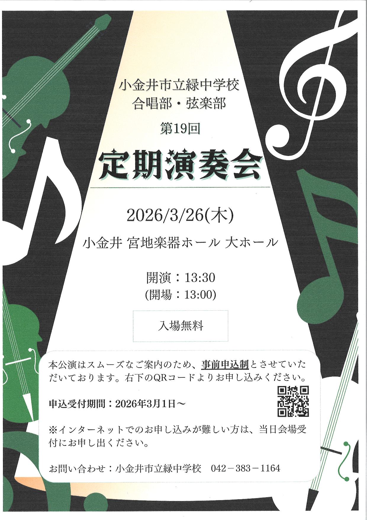 | お問合せ | 小金井市立緑中学校 合唱部・弦楽部 TEL 042-383-1164 |