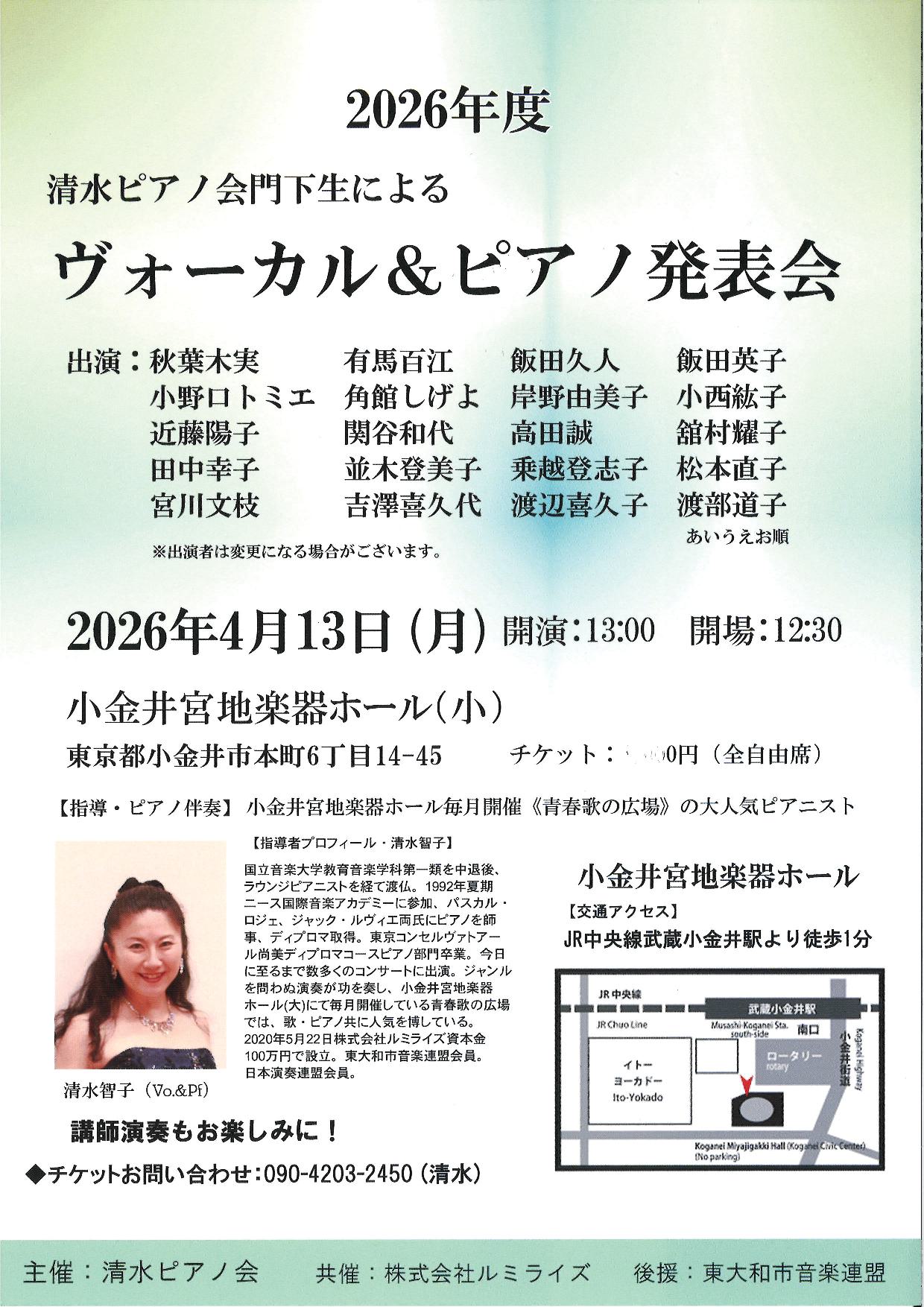 清水ピアノ会門下生によるヴォーカル&ピアノ発表会